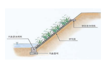 | 재료 | 필터NET + 지오그리드 + 네일 + 식생기반재 + 혼합종자 | 황토블럭 + 콘크리트 | 바이오캡슐 + 우드칲 + 식생 콘크리트 |