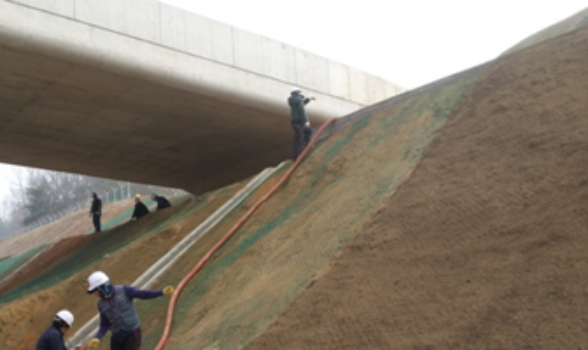 SOIL-Fiber 공법은 절·성토 토사사면에 내침식성 및 보강효과를 증대시킨 각종 Fiber와 친환경 식생기반재를 혼합 취부하는 식생력이 우수한 공법으로 다양한 초,목본류 파종이 가능하며 자연적 식생천이를 유도하는 조기 녹화 공법이다.